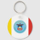 Chaveiro com pavilhão da cidade de Columbus, Ohio; bandeira com três bandas verticais de amarelo, branco e vermelho com selo azul da cidade com águia careca no centro