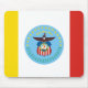 Mousepad com pavilhão da cidade de Columbus, Ohio; pavilhão com três bandas verticais de amarelo, branco e vermelho com selo azul da cidade com águia careca no centro