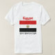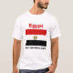 Um título e um slogan editáveis acompanham a brasão sobre bandas vermelhas, brancas e pretas da bandeira egípcia na parte dianteira deste t-shirt. A parte traseira indica um mapa detalhado de Egipto.