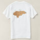 A parte dianteira deste t-shirt carrega uma bandeira pequena do Honduran com suas cinco estrelas azuis familiares em uma banda branca com bandas azuis acima e abaixo de, quando a parte traseira indicar um mapa de alivio de Honduras. Disponível em t-shirt, em camisolas, em polo, em longo-Capas e em mais.