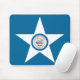 Mousepad com bandeira de Houston, Texas; bandeira azul com selo de Houston numa estrela branca, com ilustração de um comboio
