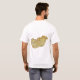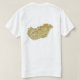 Um título e um slogan editáveis acompanham as bandas horizontais vermelhas, brancas e verdes da bandeira húngara na parte dianteira deste t-shirt. A parte traseira indica um mapa detalhado de Hungria.