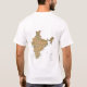 Um título e um slogan editáveis acompanham o motivo circular azul em uma banda branca com uma banda alaranjada acima e banda do verde abaixo da bandeira indiana na parte dianteira deste t-shirt. A parte traseira indica um mapa detalhado de India.