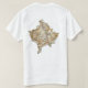 A parte dianteira deste t-shirt carrega uma bandeira kosovar pequena com seu mapa amarelo familiar e as estrelas brancas em um fundo azul, quando a parte traseira indicar um mapa de alivio de Kosovo. Disponível em t-shirt, em camisolas, em polo, em longo-Capas e em mais.