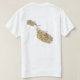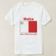 Um título e um slogan editáveis acompanham as bandas verticais brancas e vermelhas com uma cruz maltesa na grua superior da bandeira maltesa na parte dianteira deste t-shirt. A parte traseira indica um mapa detalhado de Malta.