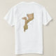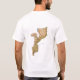 Um título e um slogan editáveis acompanham o motivo dentro de um triângulo vermelho com bandas verdes, pretas e amarelas à direita da bandeira moçambicana na parte dianteira deste t-shirt. A parte traseira indica um mapa detalhado de Mozambique.