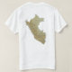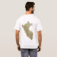 A parte dianteira deste t-shirt carrega uma bandeira peruana pequena com suas bandas verticais familiares do vermelho, as brancas e as vermelhas, quando a parte traseira indicar um mapa de alivio de Peru. Disponível em t-shirt, em camisolas, em polo, em longo-Capas e em mais.