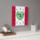 Relógio com pavilhão da cidade de Raleigh, Carolina do Norte; bandeira com três bandas verticais de vermelho e branco com selo da cidade no centro