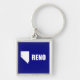 Chaveiro ao quadrado com bandeira da cidade de Reno, Nevada; bandeira azul com forma branca de Nevada com estrela simbolizando a localização de Reno dentro do estado