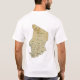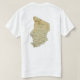 A parte dianteira deste t-shirt carrega uma bandeira chadiana pequena com suas cores azuis, amarelas e vermelhas familiares, quando a parte traseira indicar um mapa de alivio de República do Tchad. Disponível em t-shirt, em camisolas, em polo, em longo-Capas e em mais.