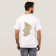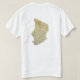 Um título e um slogan editáveis acompanham as bandas verticais azuis, amarelas e vermelhas da bandeira chadiana na parte dianteira deste t-shirt. A parte traseira indica um mapa detalhado de República do Tchad.