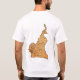 A parte dianteira deste t-shirt carrega uma bandeira camaronesa pequena com suas cores verdes, vermelhas e amarelas familiares, quando a parte traseira indicar um mapa de alivio de República dos Camarões. Disponível em t-shirt, em camisolas, em polo, em longo-Capas e em mais.