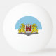 Bola de ping pong com design com bandeira de Riga, capital da Letónia; bandeira branca e azul com casacos de armas com dois leões ouro segurando um escudo no centro