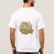 Um título e um slogan editáveis acompanham as bandas verticais azuis, amarelas e vermelhas da bandeira romena na parte dianteira deste t-shirt. A parte traseira indica um mapa detalhado de Romania.