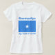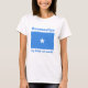 Na parte dianteira desta camisa um título e um slogan editáveis acompanham a bandeira somaliana com sua estrela branca em uma luz - fundo azul. A parte traseira indica um mapa detalhado de Somália.