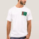 A parte dianteira deste t-shirt carrega uma bandeira turquemena pequena com seu crescente branco familiar e estrelas em um fundo verde com banda vertical decorativa para a grua, quando a parte traseira indicar um mapa de alivio de Turkmenistan. Disponível em t-shirt, em camisolas, em polo, em longo-Capas e em mais.