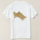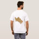 Um título e um slogan editáveis acompanham o crescente e as estrelas brancos em um fundo verde com banda vertical decorativa para a grua da bandeira turquemena na parte dianteira deste t-shirt. A parte traseira indica um mapa detalhado de Turkmenistan.
