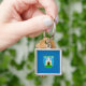 Chaveiro quadrado com design com bandeira de Zagreb, capital da Croácia, bandeira azul com emblema