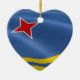 A bandeira nacional de Aruba () foi adotada o 18 de março de 1976. O design consiste em um campo da luz - azul (chamado "Larkspur" ou do "azul U.N."), duas ("amarelo Bunting") listras amarelas horizontais paralelas estreitas ao meio inferior, e (de "vermelho da bandeira união") uma estrela vermelha branco-fimbrada quatro-aguçado no cantão. Os elementos do design têm significados simbólicos múltiplos: O campo azul representa o céu, o mar, a paz, a esperança, o futuro de Aruba e as suas gravatas ao passado. As duas listras estreitas "sugerem o movimento para o aparte do estado". A outra "indústria, todos os minerais (ouro e fosfatos no passado, petróleo no início do século XX)". Além do que o sol, o ouro, e a abundância, o amarelo é dito igualmente representar flores do wanglo. A estrela tem particular o simbolismo complexo. É vexillologically incomum em ter quatro pontos, representando os quatro sentidos cardinais. Estes referem por sua vez muitos países de origem das pessoas de Aruba. A estrela igualmente representa a ilha própria: uma terra do solo frequentemente vermelho limitado pelas praias brancas em um mar azul. A cor vermelha igualmente representa a vertente do sangue por Arubians durante a guerra francesa com os habitantes indianos, amor patriótico da passagem. O branco igualmente representa a pureza, a honestidade e nossas praias brancas. O 18 de março é um feriado em Aruba, conhecida porque o dia de bandeira e são comemorados através dos carnavais e das feiras.