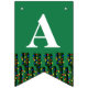 Uma ilustração gráfica de um cacto-árvore com luzes de Natal em uma bandeira de bunting da festa de Natal Fiesta.