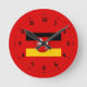 Relógio de Parede com pavilhão da Baixa Saxónia; design com tricolor horizontal de preto, vermelho e amarelo (ouro), com emblema do Estado com uma ilustração de um cavalo branco no centro
