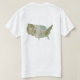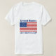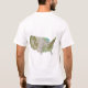 Um título e um slogan editáveis acompanham as listras vermelhas e brancas com as estrelas brancas no cantão azul da bandeira americana na parte dianteira deste t-shirt. A parte traseira indica um mapa detalhado dos EUA.