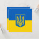Cartão plano com a bandeira da Ucrânia, uma bandeira azul e amarela com o casaco de armas ucraniano (emblem) com um tridente no centro