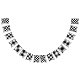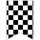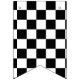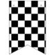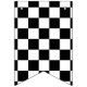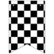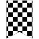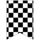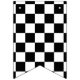 Faixas de banner mostradas aqui com uma impressão de bandeiras de corrida pretas e brancas.