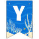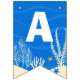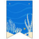 Esta faixa de festa de aniversário com o tema da praia fofa apresenta um belo fundo submarino com bonito coral-do-mar e um golfinho fofo no centro. Condecoração azul perfeita para uma festa de piscina ou luau.
