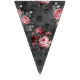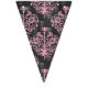 Este grupo de assombração apresenta um damasco gótico vitoriano, listras, designs de diamante, crânio e flor. Esta faixa de bunting é perfeita para um evento de casamento de Halloween ou outubro. As cores incluem rosa, preto, branco e cinzas.