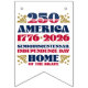 Decorem o vosso partido pelo 250º aniversário da América com estas bandeiras arrojadas e brilhantes. Eles são a cereja em cima do bolo. Têm cores vermelhas, brancas, azuis e douradas com uma design de tipografia moderna, uma ilustração com o Sino da Liberdade, e por último, mas não menos patriótica, estrelas e listras da bandeira dos EUA. O texto diz: 250, América, 1776 - 2026, semiquincentenário, Dia da Independência, lar dos corajosos, e em torno do sino da liberdade: Filadélfia, Pensilvânia 1776 - 2026. Feliz aniversário América!