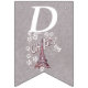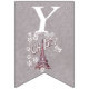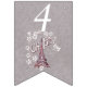 Esta bandeira moldada com banner de aniversário feliz é uma cinza clara com uma ilustração da torre Eiffel na França cercada por flores margaridas brancas com o texto Oh, Paris. Personalize o ano de aniversário com os modelos.