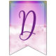 Juntar-se ao tema da festa é uma faixa de festa com as letras "Parabéns" em cada bandeira, céu roxo e nuvem com um arco-íris para o fundo com cada letra no topo. Como parte do tema "Fada Negra Cuta", este é um design bonitinho para as meninas em seu dia especial de celebração.