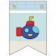 Divirta-se um pouco com este design de banheira, que tem o tema do tempo de banho apresentando um tubarão sorridente e um grande submarino redondo flutuando numa banheira que transita da parede de azulejo azul mundana, decorada com estrelas de laranja, para um fundo oceânico arenoso imitando o imaginário fantástico de uma criança brincando com brinquedos. Personalize a mensagem temática da alga na faixa com o seu pequeno gênero em breve ou uma mensagem da sua escolha para criar uma decoração de partido verdadeiramente única para o seu chá de fraldas. Isso pode ser facilmente alterado entre "garoto!", "garota" e "bebê", e se você estiver tendo gêmeos ou outros múltiplos, basta clicar no botão "Personalizar" para obter mais opções. Verifique a coleção de Ricos de Tempo de Banho do cheio para mais ofertas e produtos de excelente para um chá de fraldas ou para o pequeno da sua vida.