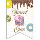 Celebre o seu aniversário com esta faixa da Festa "Doce Um", parte de uma coleção de aniversários! Apresentando um fundo de aspersão divertida, rosquinhas coloridas e glacé gotejando do topo, este bunting adiciona um toque festivo e adorável a qualquer celebração. Perfeito para retratos, mesas de sobremesa ou decorações. Complete a sua festa com convites coordenados, cartas de agradecimento e outras decorações da coleção de correspondência para tornar seu primeiro aniversário realmente doce!