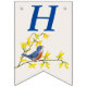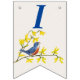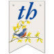 Bandeirinha BirthdayBlue Red Bird no Branch Yellow Flowers