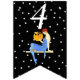 Esta bandeira em forma de bunting Happy Birthday banner é negra com estrelas brancas e uma flaper com cabelo vermelho em um vestido azul sentado em uma prateleira girando suas pérolas com a lua atrás dela. Personalize o ano de aniversário e envie texto com os modelos.