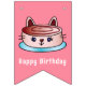 Esta faixa de aniversário de gatos é tão fofa e colorida!! Cada bandeira é um desenho de um gatinho adorável diferente. Todos os sinalizadores numerados podem ser personalizados com suas mensagens. As bandeiras de número ímpar têm fundo de bolinhas. Procure por convites, guardanapos, pratos e xícaras na nossa coleção de festas.