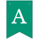 Uma simples faixa de bandeiras para um casamento verde esmeralda, com os nomes da noiva e do noivo, com bonés brancos em fundo real.