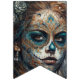 mulher de rosto belamente pintado e flores no cabelo pronta para Dias de los Muertos em cor turquesa
