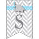 Bandeirinha Chá de fraldas Elefante de Cinza branca azul