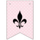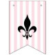 Ooh la la! Celebre a futura senhora com esta grinalda de chá de panela de casamento rosa parisiense chic. Alternando bandeirolas apresentam listras rosa e branco e bolinhas com elegantes acentos de flor-de-lis e letras serifadas pretas em negrito para um visual inspirado em francês. Uma decoração elegante para um chá de panela temático parisiense ou almoço de noiva.