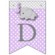 Bandeirinha Cinzas brancas roxas 🐘 Elefante Bebê - Batismo