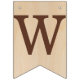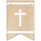 Um ajustado de bandeira de bunting para batismos, primeiros sindicatos ou confirmações religiosas. Bonés castanhos e brancos sobre fundo de madeira marrom-claro (faux), com cruz branca no início. A mensagem é "Deus abençoe" seguida de um nome de 7 letras (o padrão é William).