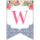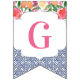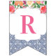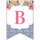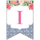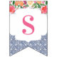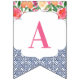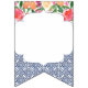 Bandeiras de banner de reposição que combinam azulejos típicos de espanhol azuis-escuros com citros e florais arrojados. Aqui é apresentado para uma festa de chá de fraldas, mas é claro que a inscrição pode ser personalizada para um chá de casamento ou aniversário, etc.