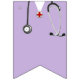 Creative doctor party bunting flags decoration featuring lavender hospital scrubs and stripes.
