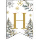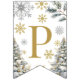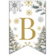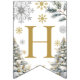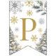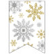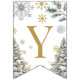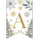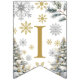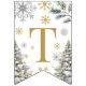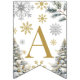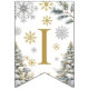 Parabéns, Banner de bunting Winter. Flocos de neve Dourados e prateados e pinheiros. Ideal para a festa de aniversário de inverno.