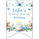 Bandeirinha Fada de Borboleta Azul Pastel Primeiro Aniversário