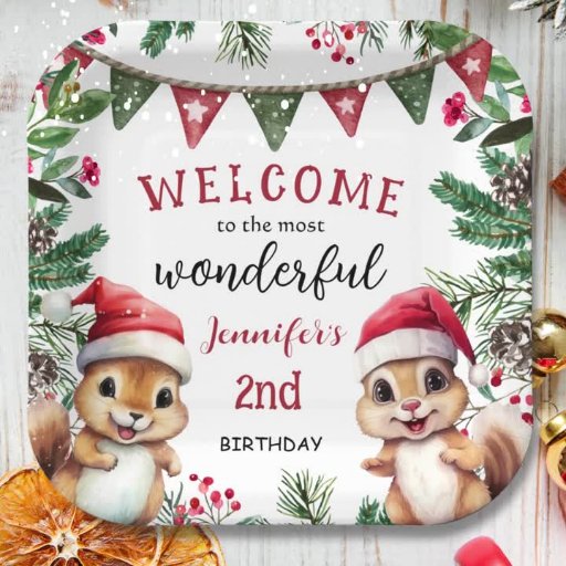 Cute Squirrel Christmas 2nd Birthday PartyCriado por H-Art Studio Design