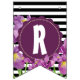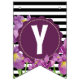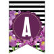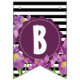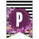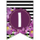 Bandeirinha Feliz Aniversário Roxo Iris Black White Stripes